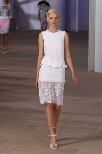 The Mercedes Benz New York Fashion week is coming to a close tonight. It has been a whirlwind week for everyone involved. Oh how would it be to experience this event. I am sure it would be just amazing. For those of us were not able to make it, here are 15 looks from some of the most amazing designers. It seems the look for Spring includes flirtatious designs with floral and pastel colors and clean lines and lots of art.
