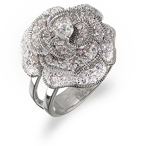 Eva Medez at the London premier of her movie ‘The Other Guys.’ The sparkling Cartier flower diamond ring is such a beautiful accent to her outfit. It can be yours for thousands of dollars. Or, we can get a beautiful cocktail ring that looks just as beautiful and bring some dazzle to our outfits.