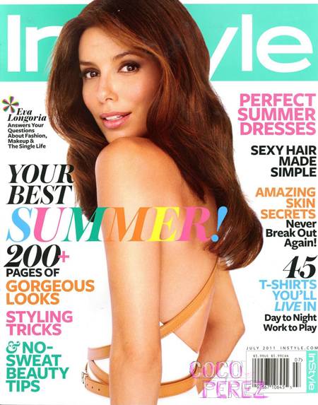 Eva Longoria, 36, looks lovely on the cover of July’s issue of ‘InStyle’ magazine. I think she looks better than ever and getting rid of Tony might have done her good.