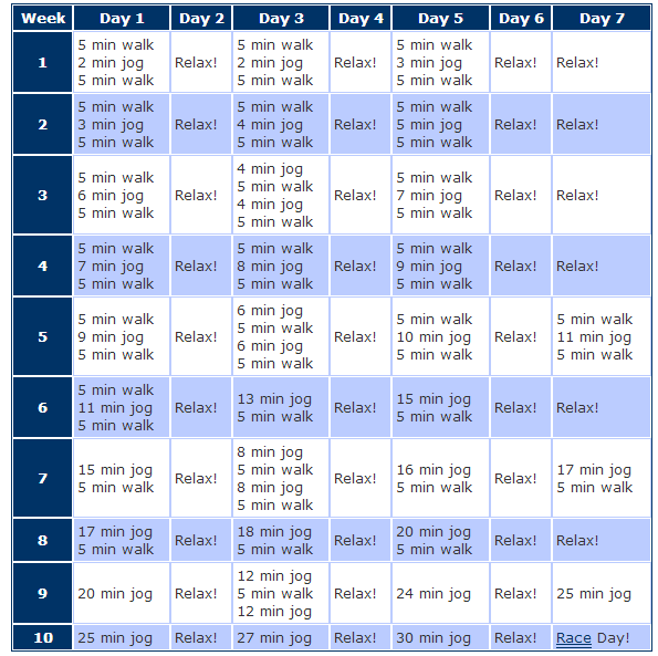 Here is the chart I am going to follow called from Couch to 5k. I think that about sums up my recent activity. I admit it, seeing so many relax days written on here is very appealing to me. At the same time, I am sure if you were dedicated, you could get to the 5k in less than 10 weeks if you cut out some of the relax days. But really, who would want to? But at least the option is there.