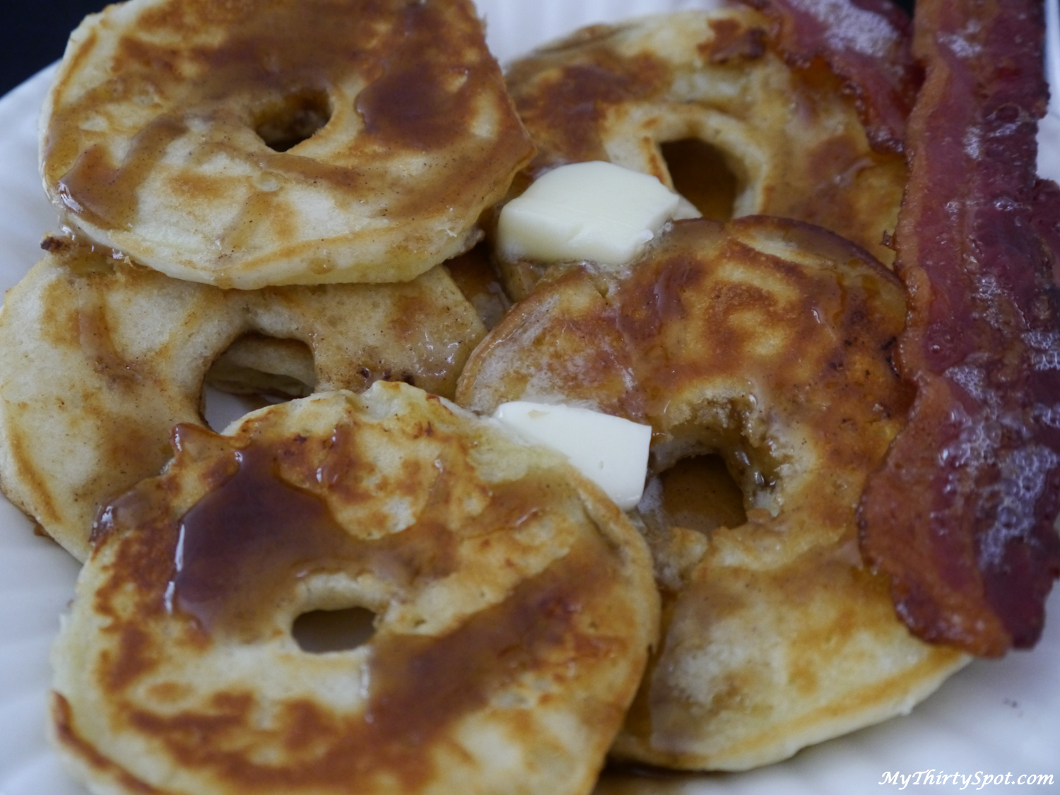 My husband won’t stop talking about how good these Pancake apple rings are. He was so grateful that he is in the kitchen doing all the dishes so I an get this post up because he said “it is important you share this deliciousness with the rest of the world asap.” What a doll.
