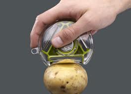 It is from Joseph Joseph for $12.00. Dishwasher safe. 3-in-1 and even has a potato eye remover. It is the best little threesome action you could ask for.