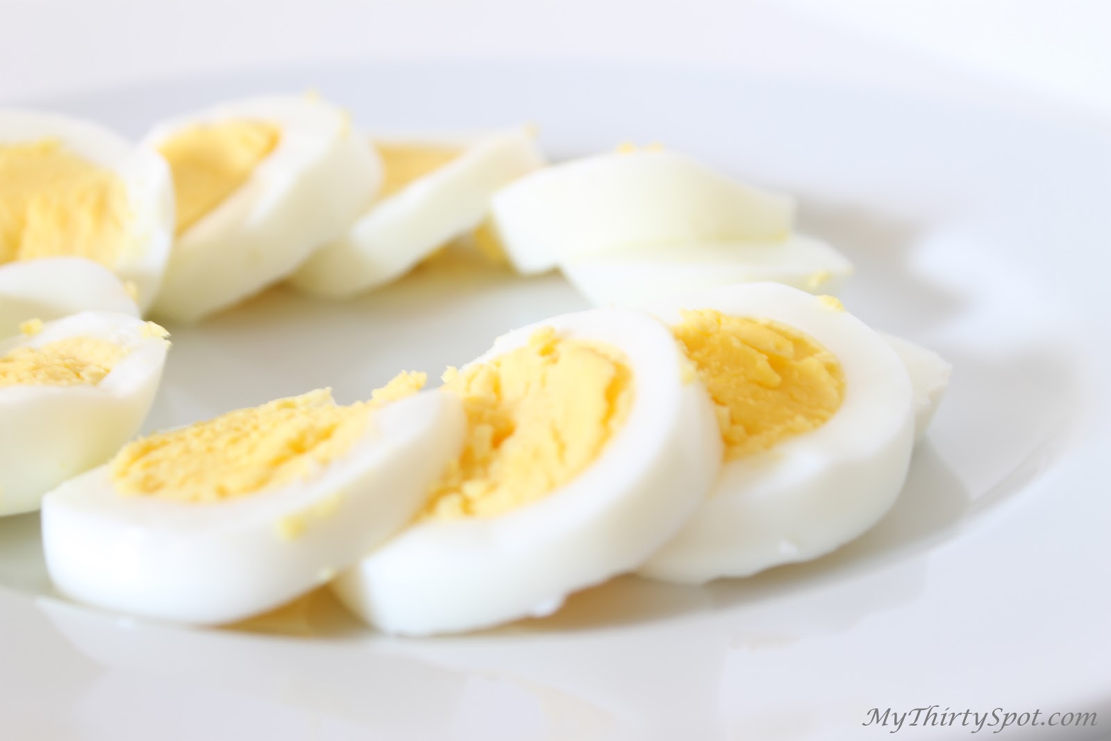 2. Before your water boils, add few dashes of salt or baking soda. That will help to peel the shell off a lot easier. I was able to peel my shells in 4 pieces. So much easier than when I have attempted to peel a hard boiled egg in the past.