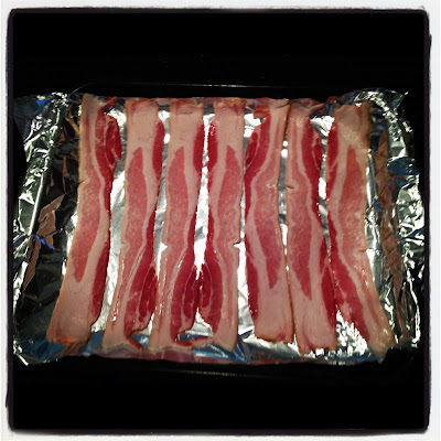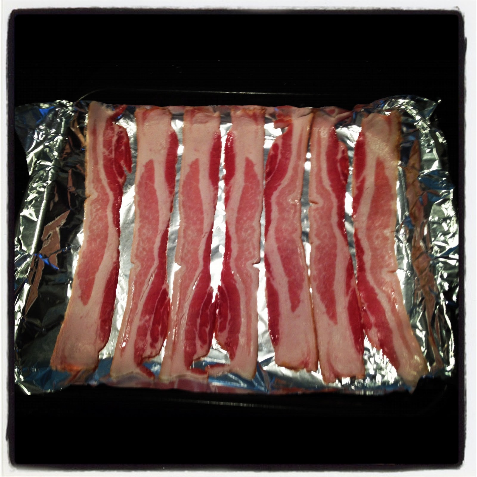 Now on to the bacon. This is the only way I make bacon and that is to bake it in the oven. Unfortunately I don’t have an “after” photo, but take it from me, baking it makes it so crispy and delicious. I foil my pans and place the bacon making sure there is space between each piece. I bake at 400 degrees for about 15 – 20 minutes. I really just eye ball it and remove once it reaches my desired crispiness. I like my bacon well done and crispy.