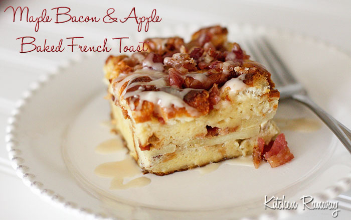 - Sprinkle bacon on top of baked French toast and drizzle with maple glaze. Serve with additional maple glaze or syrup if you like.