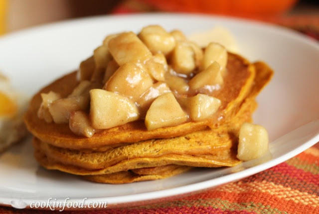 Pumpkin Pancakes with Warm Spiced Apple Topping