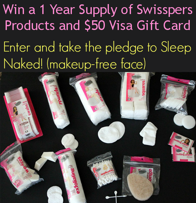 I took the pledge to Sleep Naked and make sure I remove the makeup from my face properly each and every night. Now it is your turn to take the pledge, and an added bonus is entering to win 1 Year supply of Swisspers products and a $50 Visa gift card!
