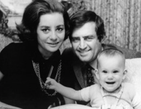 38-years-old with husband at the time, Lee Guber, and adopted daughter Jacqueline, 1968