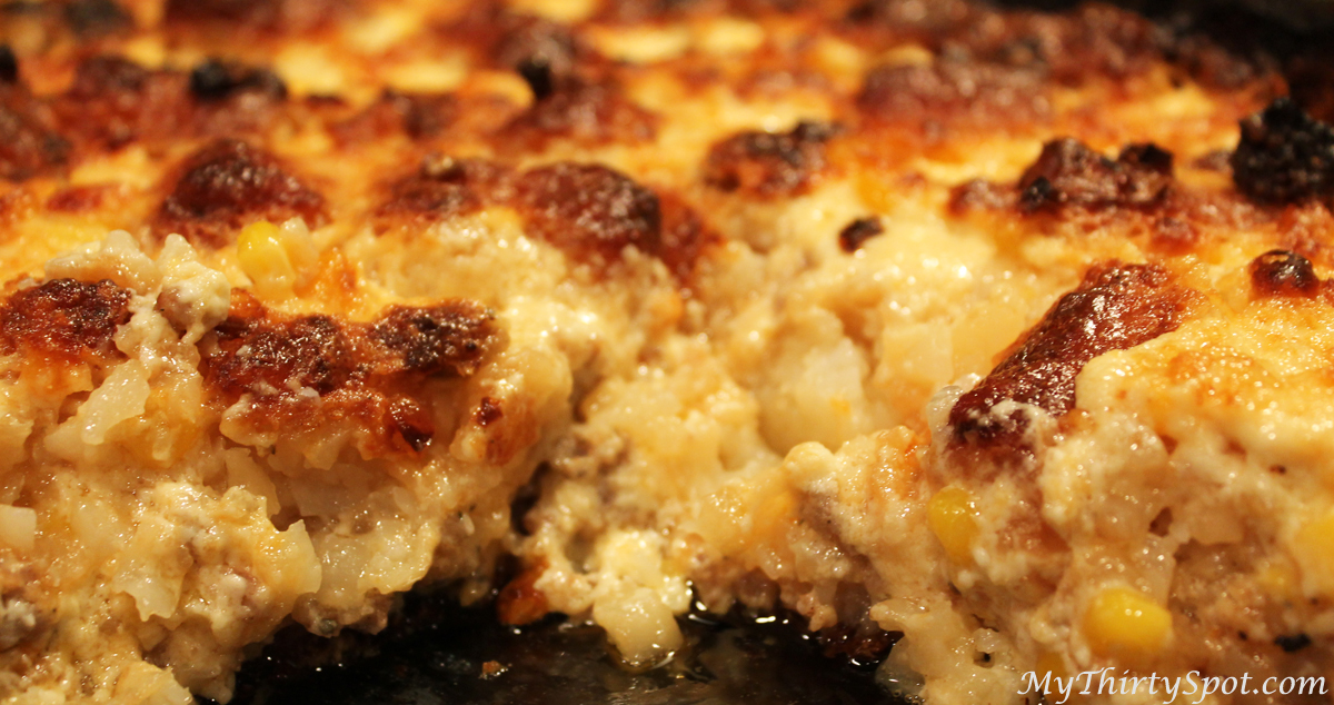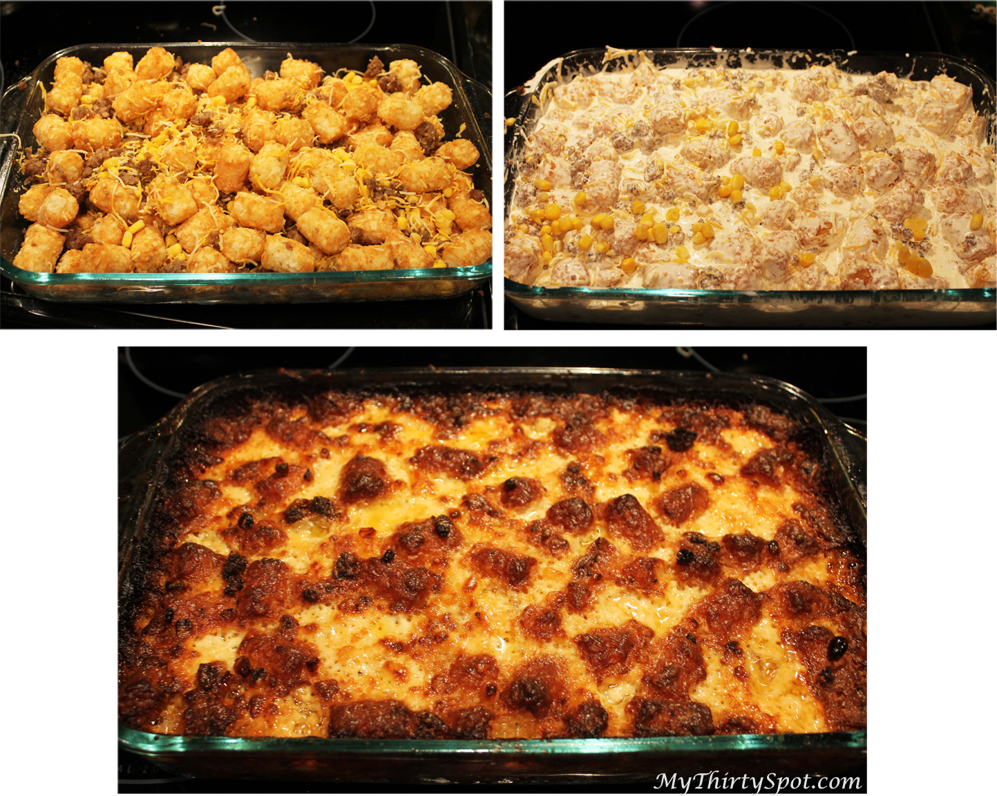 This meal is so easy; it is for one of those nights that you have no idea what to make, and can only throw something together. This casserole is literally throwing everything into the dish and bake. This is one of my husband’s favorite recipes. I usually make it for him when I am going out of town because it heats up really well and freezes even better. So yeah, I make this huge portion, freeze half and leave the other half for the hubs to happily heat up over a few nights. This is one of those dishes that my husband requests as one of his faves.